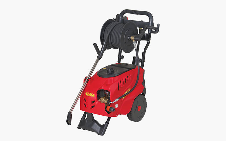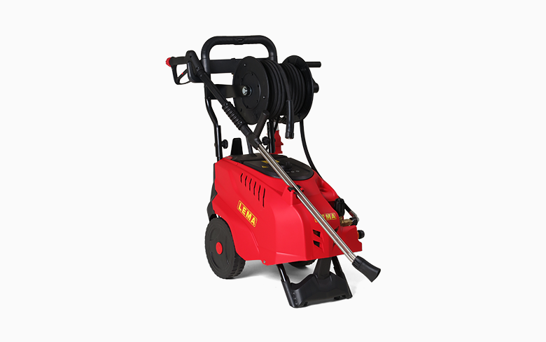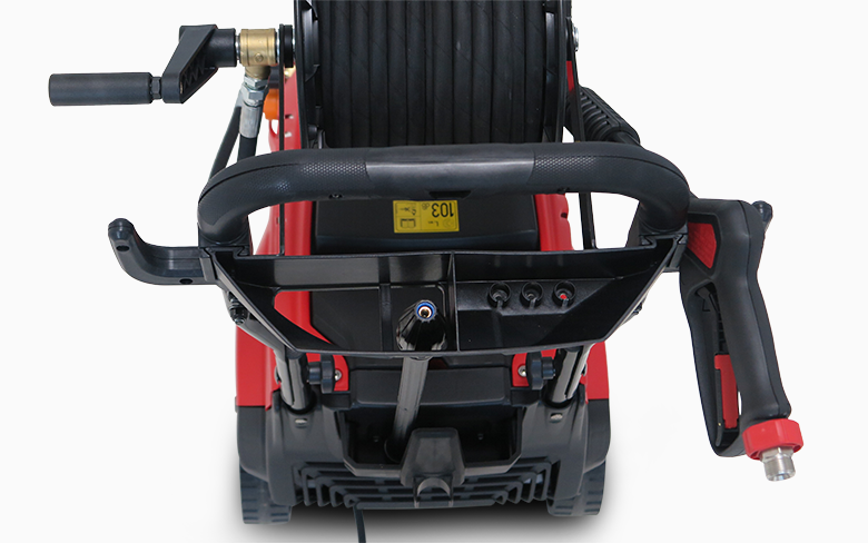 Součástí dodávky | Vysokotlaká hadice 12 m s bubnem,ovládací pistole se základní tryskou |