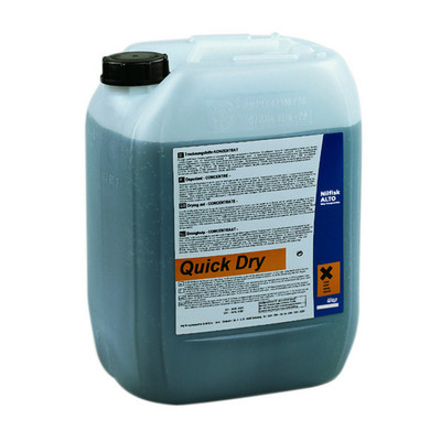 je tekutá, koncetrovaná sušící péče s minimálním efektem pěnění. QUICK DRY eliminuje skvrny od detergentů, tvrdé vody a vodní mapy.